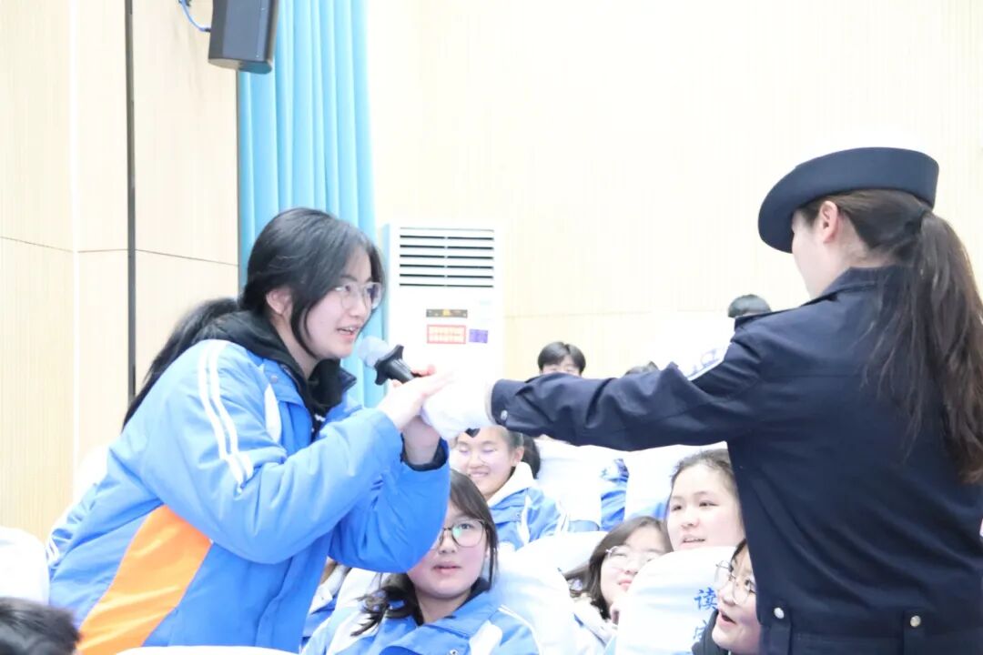 理论知识讲完,活动进入了轻松而富有意义的互动问答环节。民警精心设计了和冬季出行、文明礼让紧密相关的问题,同学们踊跃举手、争相抢答,现场掌声、欢笑声不断,将宣讲氛围推向了高潮。