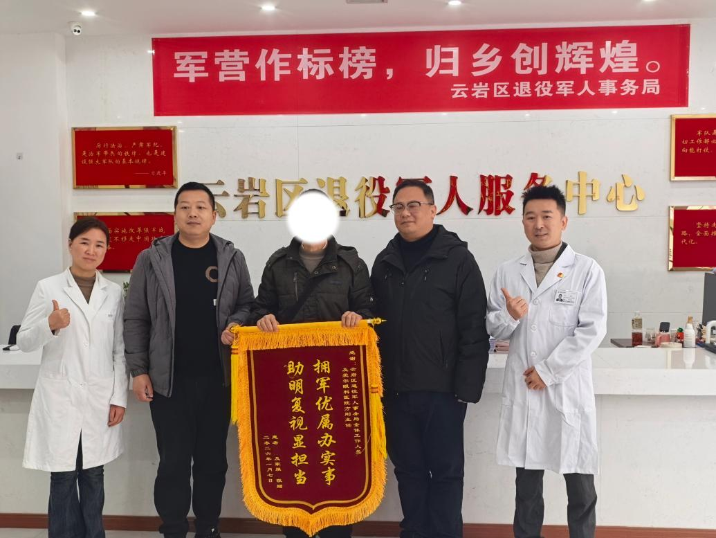 近日,退役老兵刘先生(化名)在贵阳爱尔眼科医院工作人员的陪同下,将一面印有“拥军优属办实事,助明复视显担当”的锦旗送至云岩区退役军人事务局,以此感谢政府公益帮扶与医院的专业诊疗。贵州省退役军人服务中心发起的“情暖老兵·守护光明”公益项目,聚焦退役军人的健康与生活需求,通过联动省内优质医疗资源搭建精准帮扶渠道,切实解决他们的实际困难,让退役军人感受到社会的尊崇与关怀。
