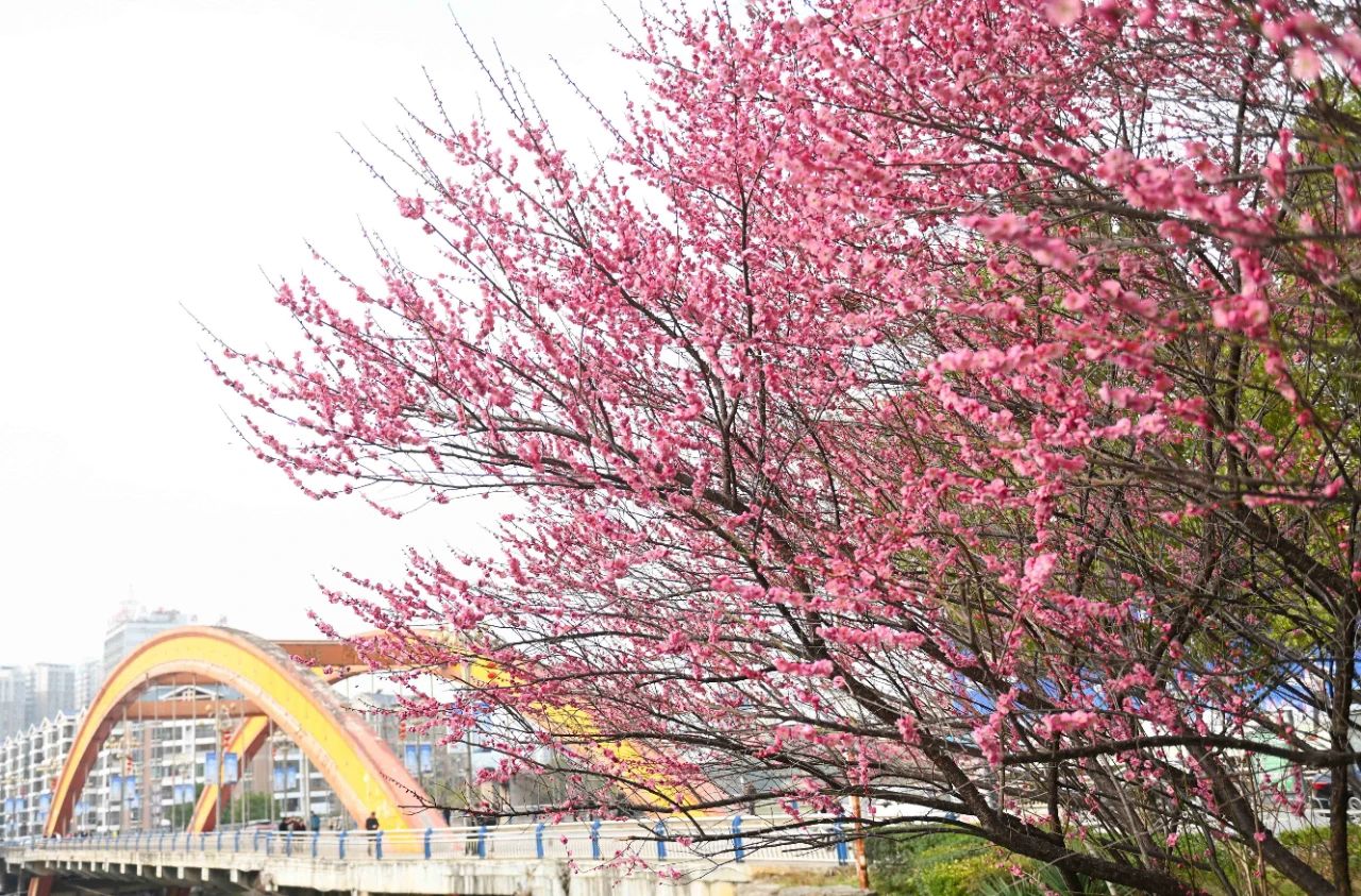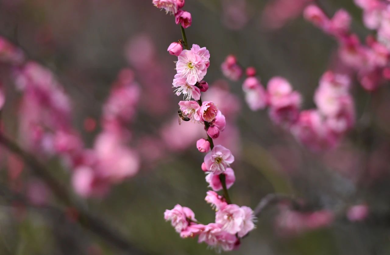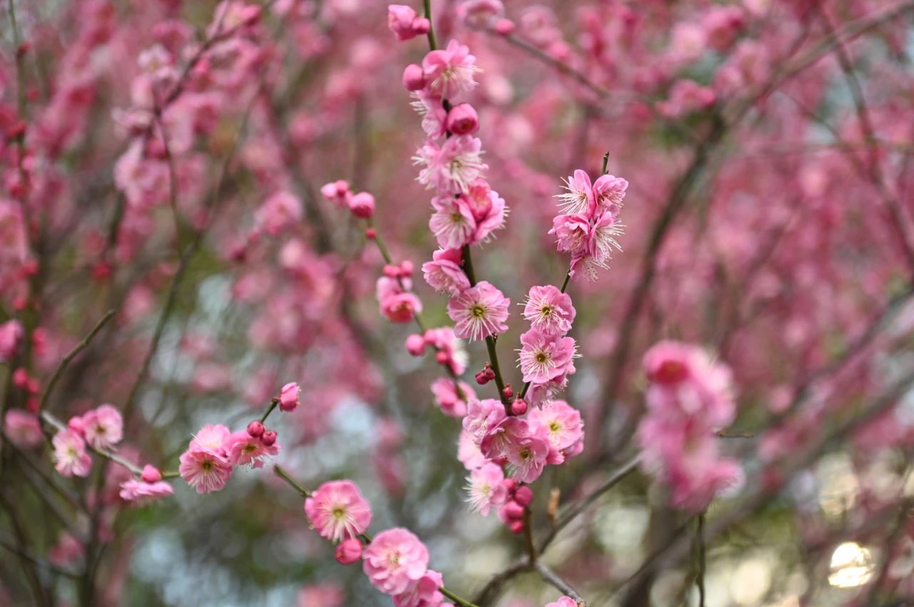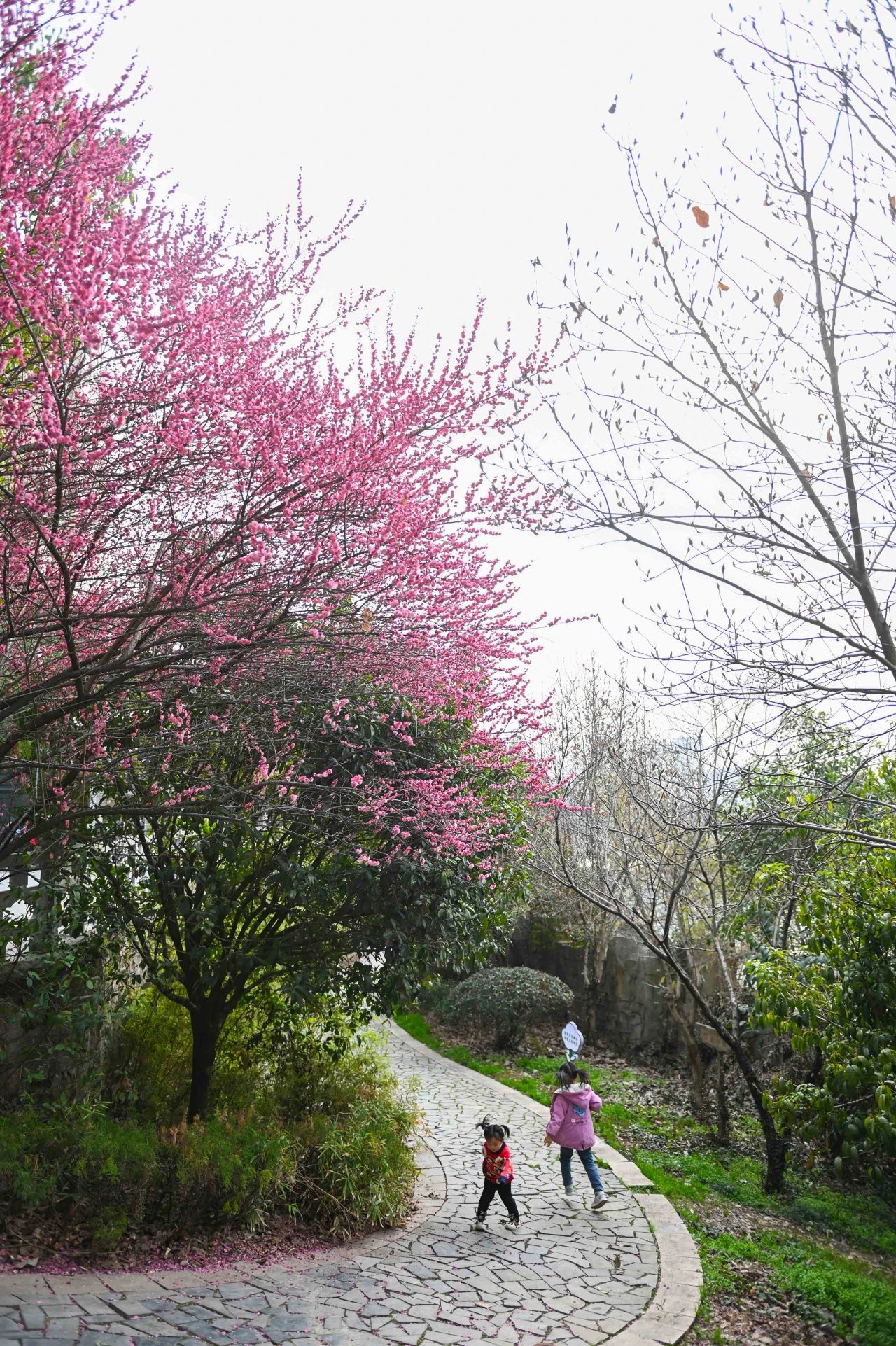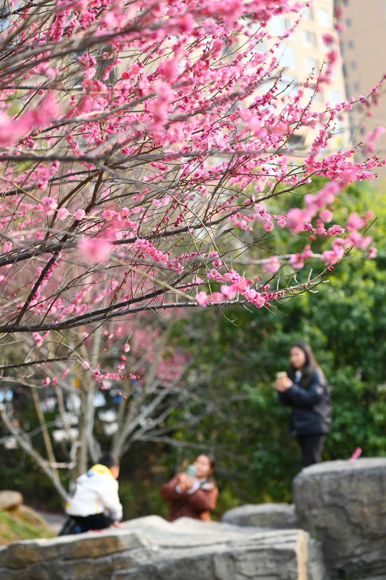 随着气温回升,我县蓼皋街道社会主义核心价值观主题公园里的梅花盛开了,人们趁着好天气,出门游玩赏花,徜徉在春光里。