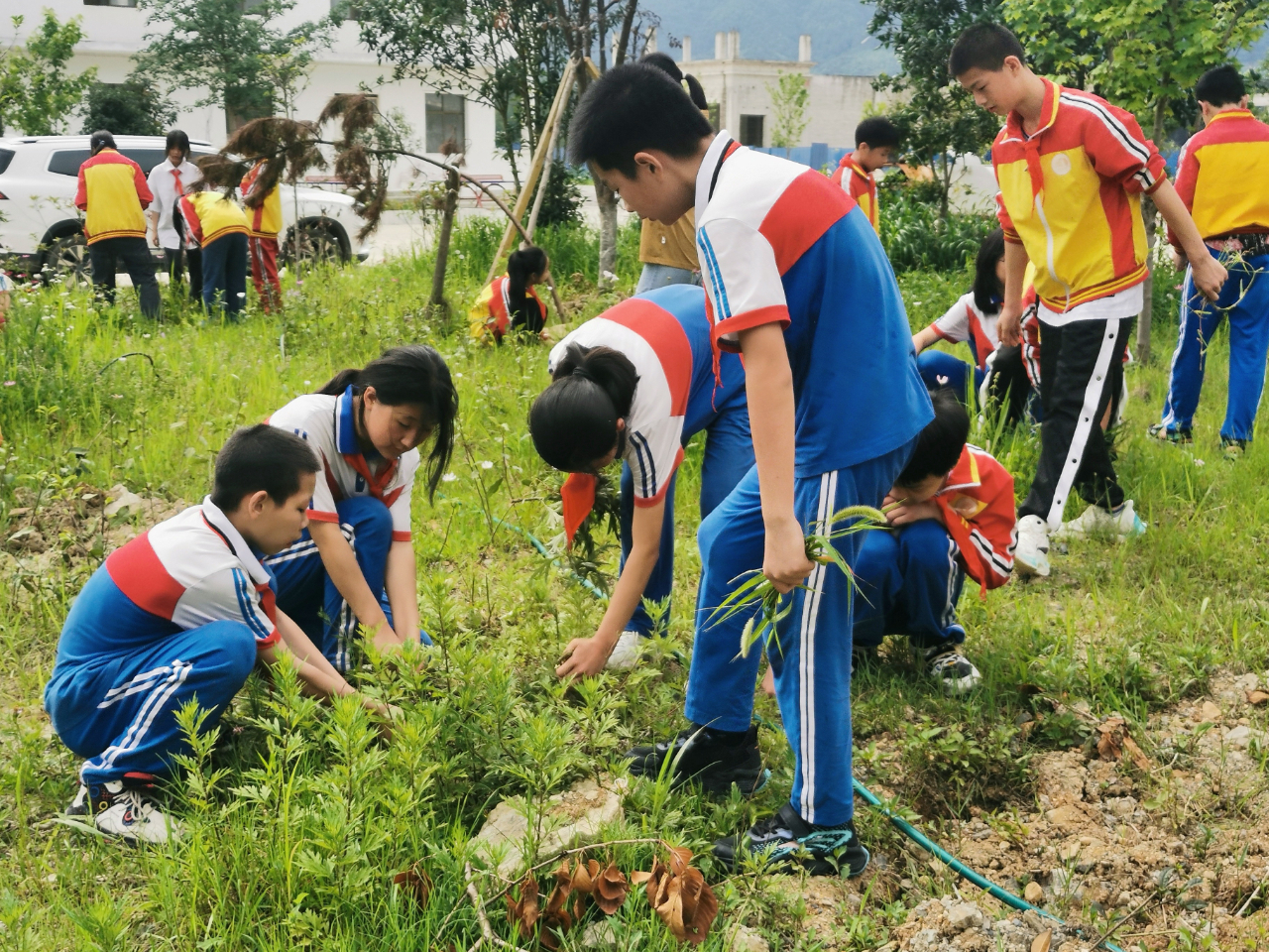 在本庄镇小学,学校组织学生在教育实践基地、学校绿化带里除杂草、给菜地浇水,把庆祝儿童节与劳动教育有机结合起来,让孩子们在劳动的同时过一个有意义的节日。