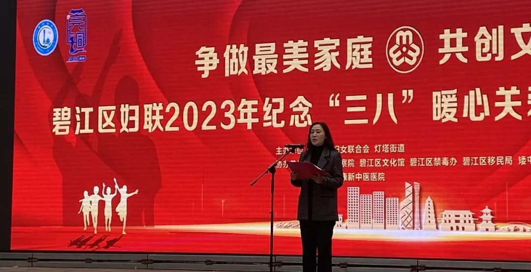人间最美三月天,春意盎然展新颜。在第113个“三八”国际劳动妇女节来临之际,结合创建全国文明城市工作要求,3月2日,碧江区妇联在灯塔街道矮屯社区举办以“争做最美家庭 共创文明社区”为主题的纪念“三八”系列活动,号召动员广大妇女群众积极主动参与文明城市创建,以小家文明促进社会文明。区政协副主席杨婵娟出席活动并讲话,区直有关部门、灯塔街道妇女群众300余人参加活动。