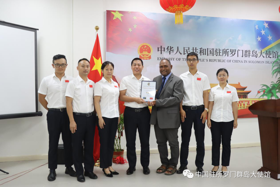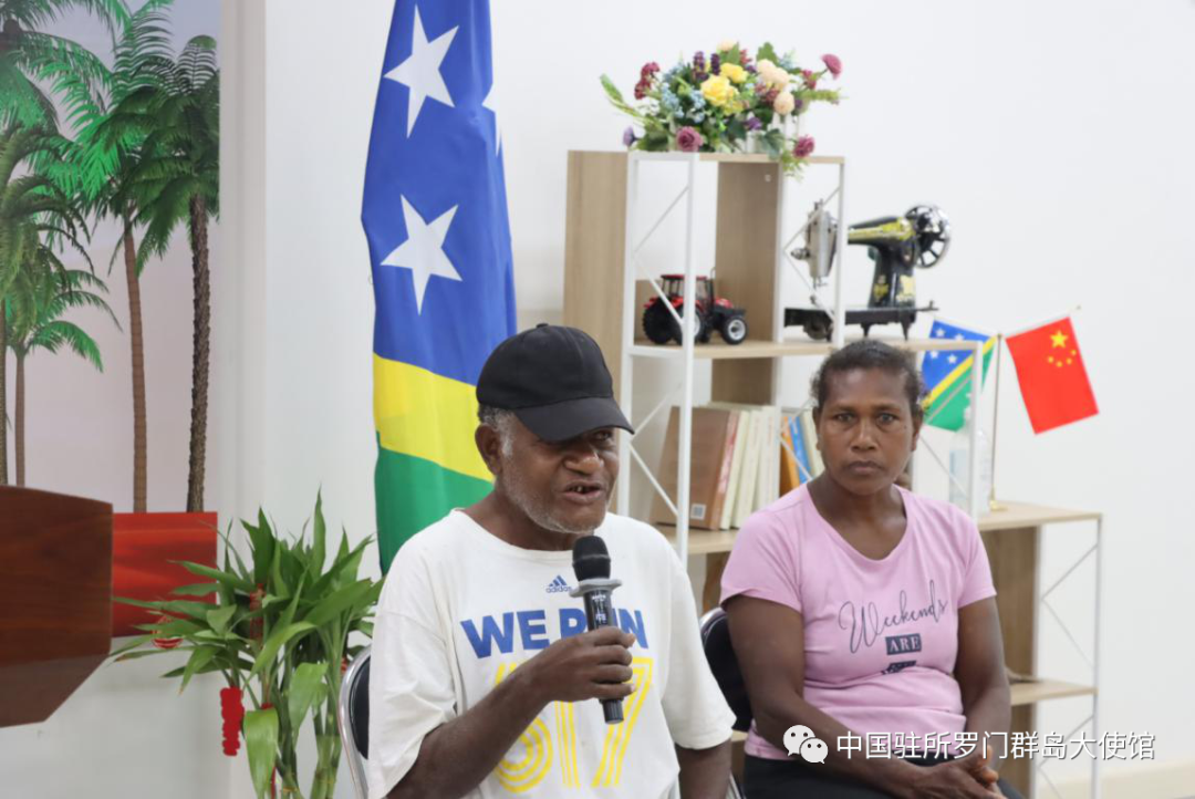 应中国驻所使馆和医疗队特别邀请,5名来自瓜达尔卡纳尔、马莱塔、西省等不同省份的患者来到使馆,现场讲述他们与中国医疗队的医患情谊,对医疗队医生救死扶伤、大爱无疆的精神和解除病痛的高超医术表示衷心感谢,赢得全场热烈掌声和赞叹。