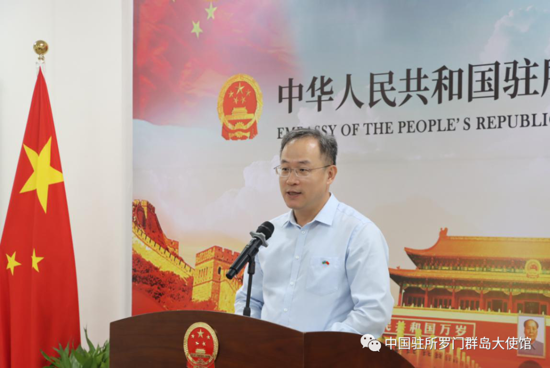 李大使致辞表示,中方积极落实习近平主席提出的人类命运共同体理念和中共二十大精神,帮助所罗门群岛政府和人民抗击疫情,加强医疗卫生能力建设,提高民众健康水平,充分彰显了两国人民亲如一家的深情厚谊。2023年是中国派遣援外医疗队六十周年。贵州省选派的首批中国援所医疗队在疫情中逆行出征,积极践行习近平主席提出的“不畏艰苦,甘于奉献,救死扶伤,大爱无疆”的中国援外医疗队精神,用理想和行动在中所人民间架设了友谊的桥梁。首批医疗队近期将完成工作任务回国,第二批医疗队整装待发。中国驻所使馆将继续支持援所医疗队开展工作,与所政府和人民共同构建人类卫生健康共同体。