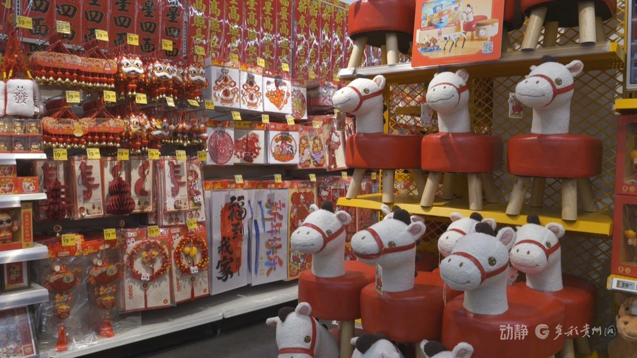 走进贵阳连锁商超,红红火火的年货街早已上线,精品礼盒、氛围感装饰品摆满货架,而宠物年货、马年生肖潮品更是掀起抢购热潮。