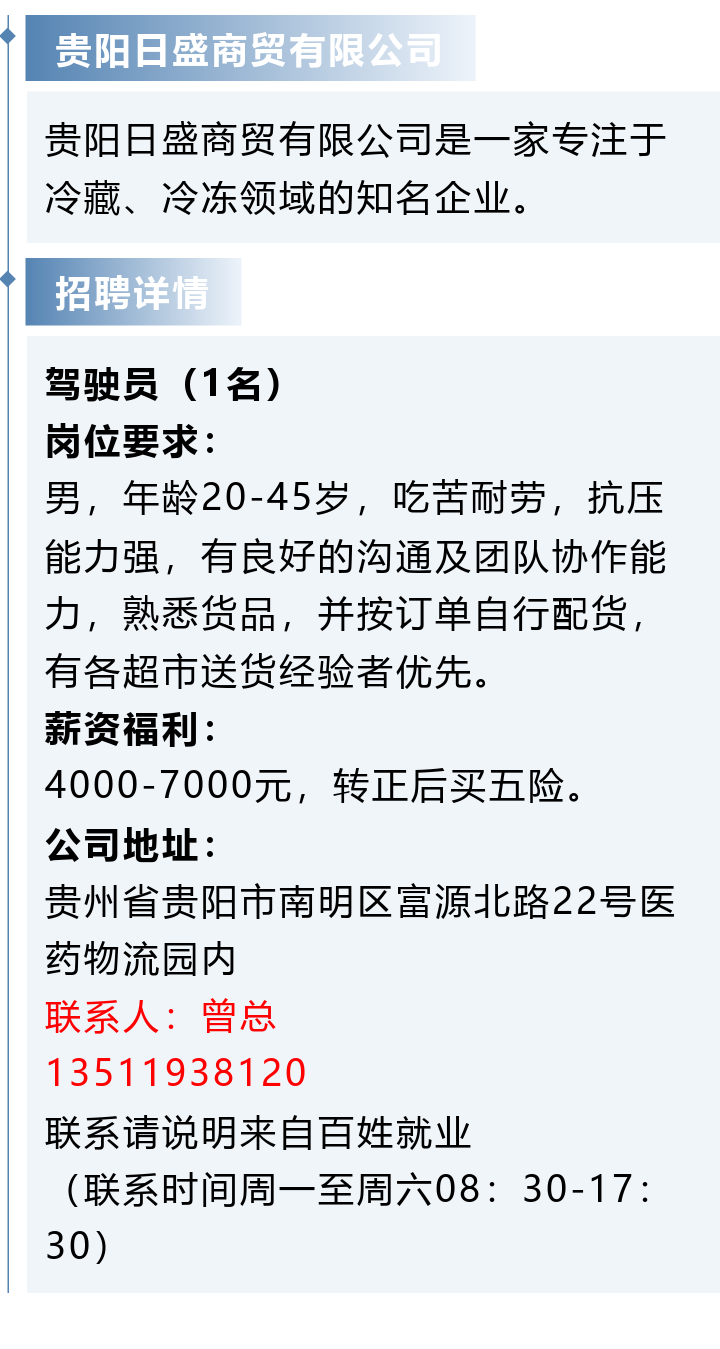 贵阳市南明区招聘驾驶员!月薪4000-7000元!