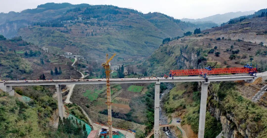 近日,随着最后一片T梁平稳落在桥墩上,沪昆国家高速公路贵阳至安顺段扩容项目(以下简称“贵安扩容项目”)配套六枝特区新场乡至牛场乡连接道路工程黄家桥大桥T梁架设任务完成,为贵安扩容项目配套道路整体通车奠定了基础。