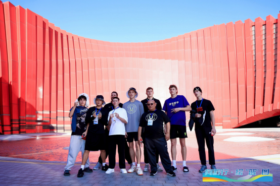 12日下午,篮球队队员们抵达贵阳后,随即前往本次交流的首站——贵州长征数字艺术馆“红飘带”,观看了演出并体验了《多彩飞跃》项目。