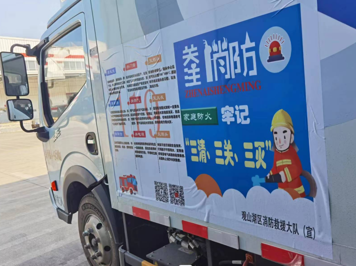 据了解,“119”消防宣传月期间,贵阳市观山湖区消防救援大队和京东物流园共同打造了一批流动宣传车,在快递物流大货车的车身印上“三清、三关、三灭”等消防安全知识,依托各条物流运输线路广泛传播消防安全知识。