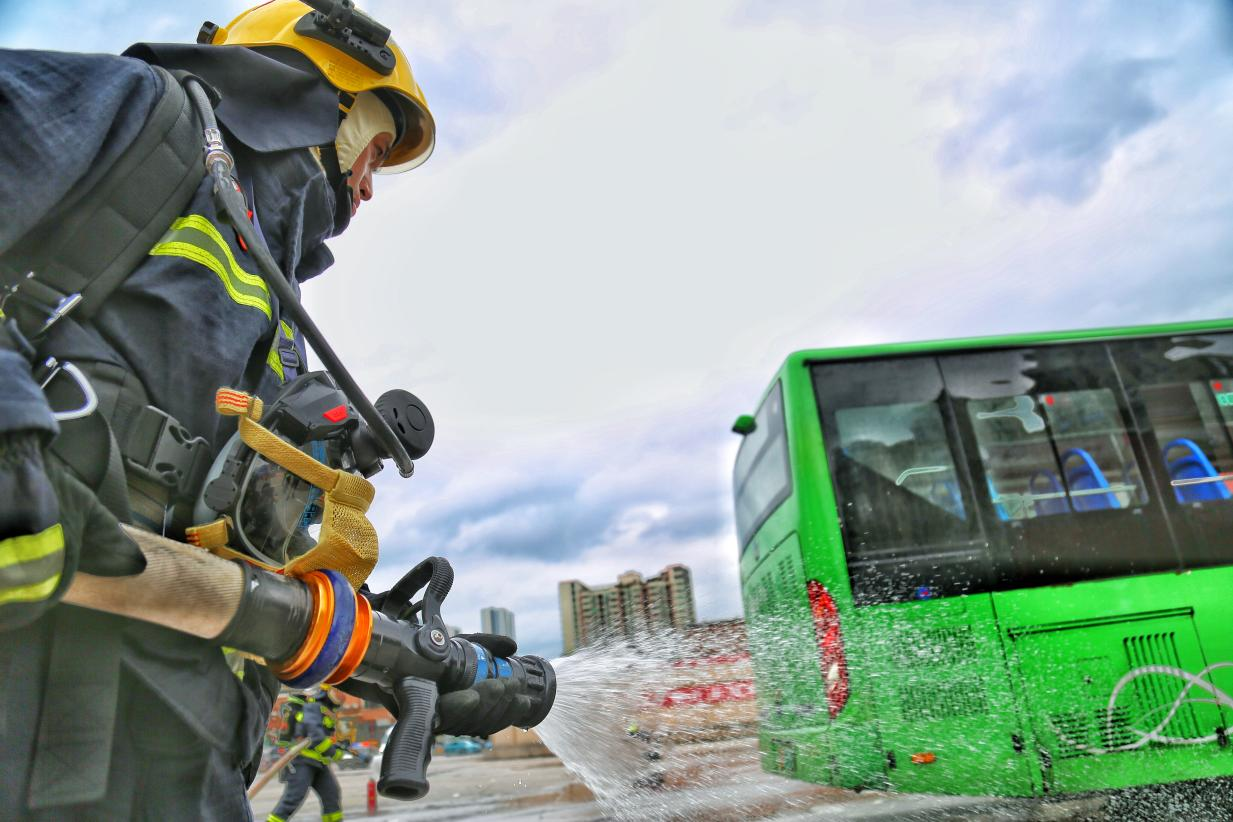 本次演练重点围绕公交行车安全、突发公共事件两方面进行,按照酒精测试、机务“三危品”检查、安全驾驶技能、公交车疏散逃生消防灭火、知识问答等5个大项,12个小项开展。