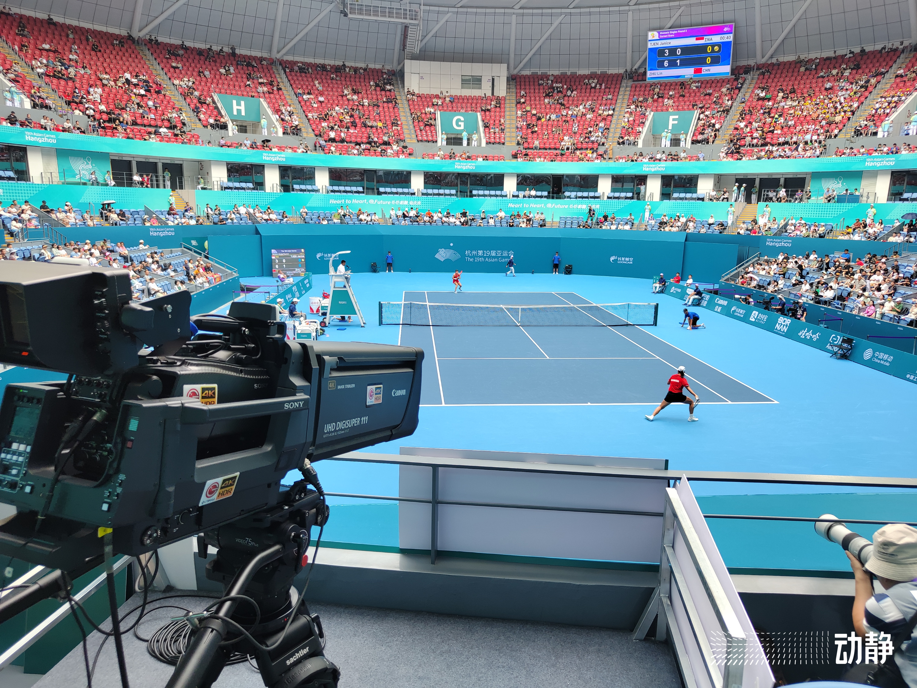 杭州亚运会网球转播车车长、贵州广播电视台电视录制中心副主任赵兴刚说,通过超高清4K和130多路音信号处理,让观众仿佛置身于小莲花的场馆中,感受亚运赛事的精彩。