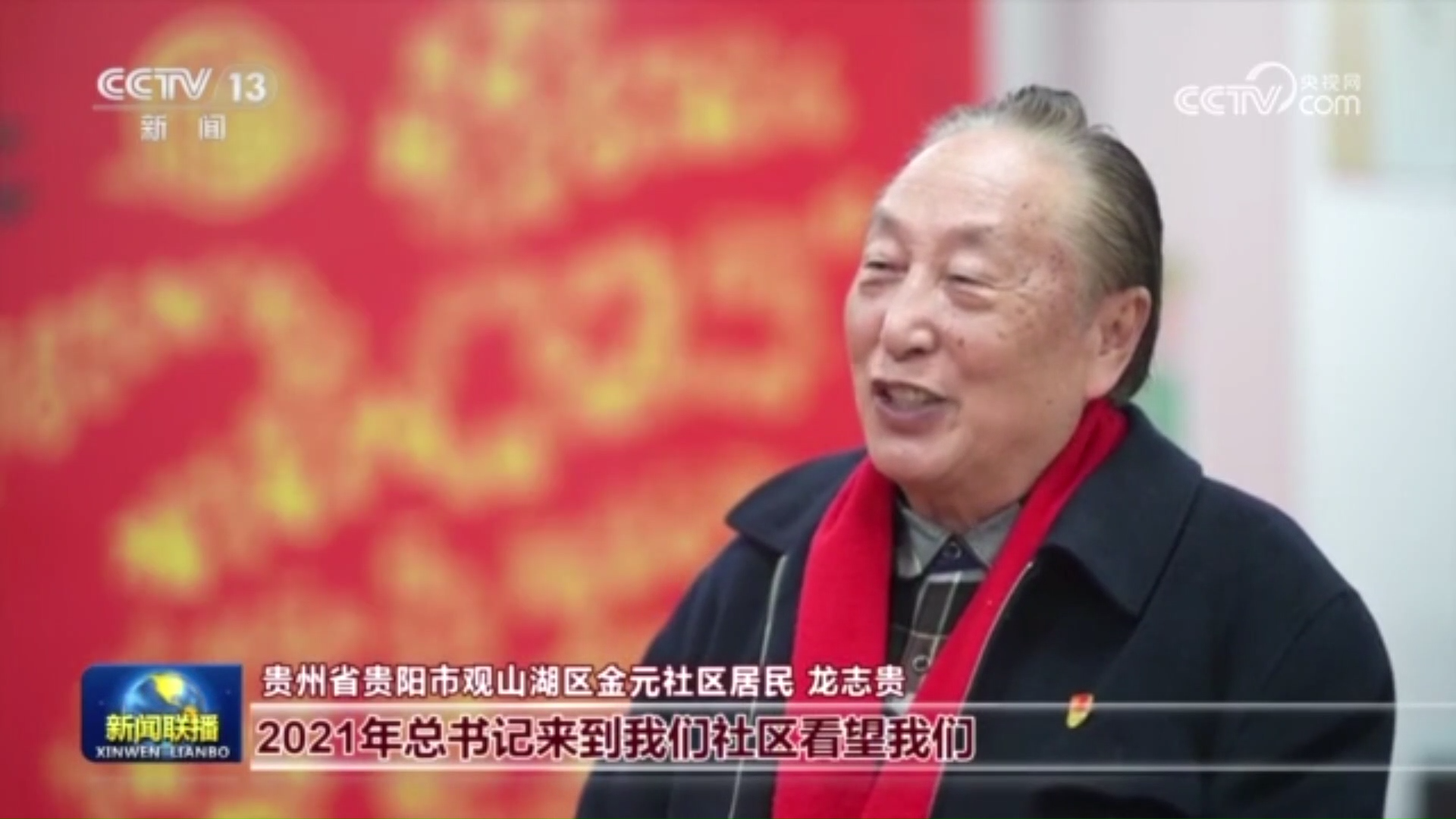 贵州省贵阳市观山湖区金元社区居民龙志贵:“2021年,总书记来到我们社区看望我们,让我们感受到关心和关爱。现在国家的政策都很好,退休生活过得很安逸。”