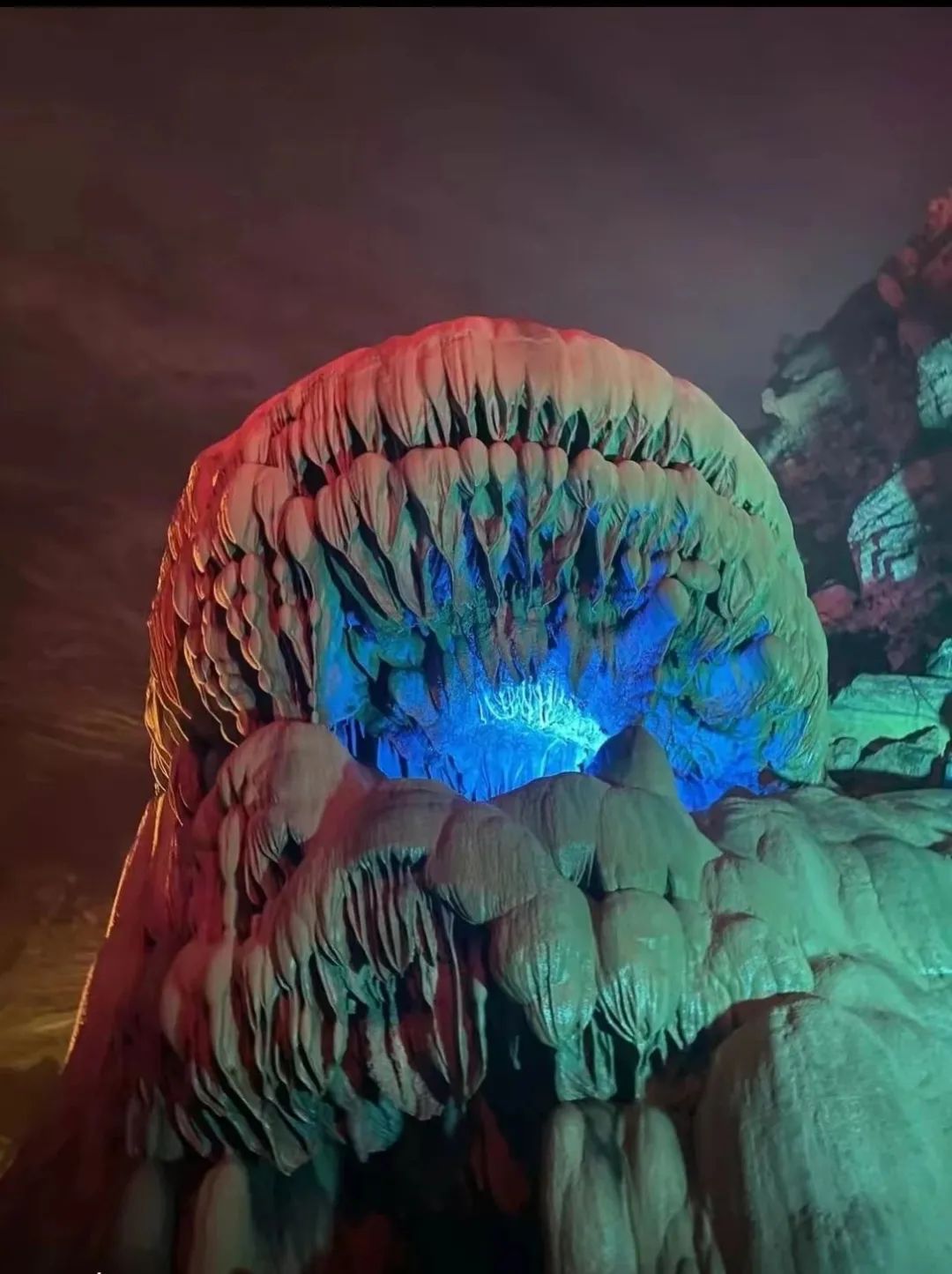 九龙洞位于铜仁城东的观音山山腰,是一个大型的天然喀斯特溶洞。洞内拥有各种形态各异的钟乳石,再配以五颜六色的灯光照射,美丽壮观,让人感慨于大自然的鬼斧神工。