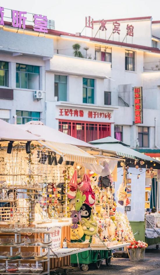 对于游客来说,街拍打卡是每到一个地方的习惯。走在十字街街上,为拍照量身定做,浪漫的、文艺的、卡通的充满年代感的……元素随处可见。游客可以打卡充满童年色彩的桂花巷