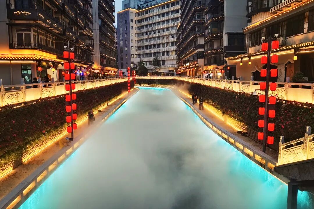 4月23日晚,位于贵阳市南明区老城核心的贯城河博爱路段沿河景观灯依次点亮,清澈的河水与绚丽的灯光交织在一起,为贵阳城市夜景增添了一道亮丽的风景线。据了解,这是贯城河博爱路段“揭盖复涌”后首次亮灯。