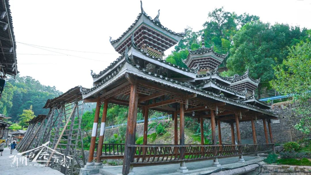 The combination of pavilions and bridges shows the unique wisdom of the Dong people. The tile eaves are covered on the pavilions, and the fences surrounds the sides of the bridge, which can not only cover the wind and rain, but also are convenient for people to take seats.