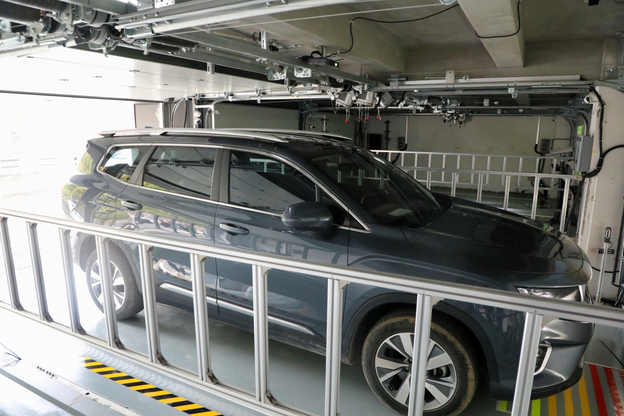 现场,工作人员进行了智能化停泊演示,由驾驶人员将车辆驶入停车楼的入口,系统感应后自动开启卷闸门。车辆缓缓驶入升降机平台,司机停稳车辆、熄火并拉紧手刹,随后折叠侧视镜,离开车辆并通过旁边的LED屏幕点击“停车”按钮。随后,由后台系统接管,自动将车辆移至指定停车位。取车时,车主只需在控制屏输入车牌号码,系统便会将车辆送出,确保车辆的安全性和操作的简易性。