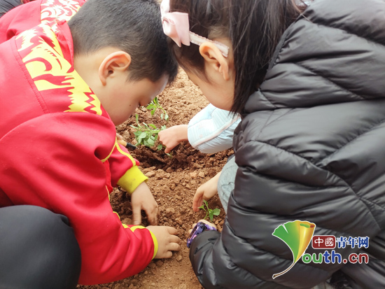 图为三台县七一小学凯江分校学生正在栽种菜苗。 霍志刚摄