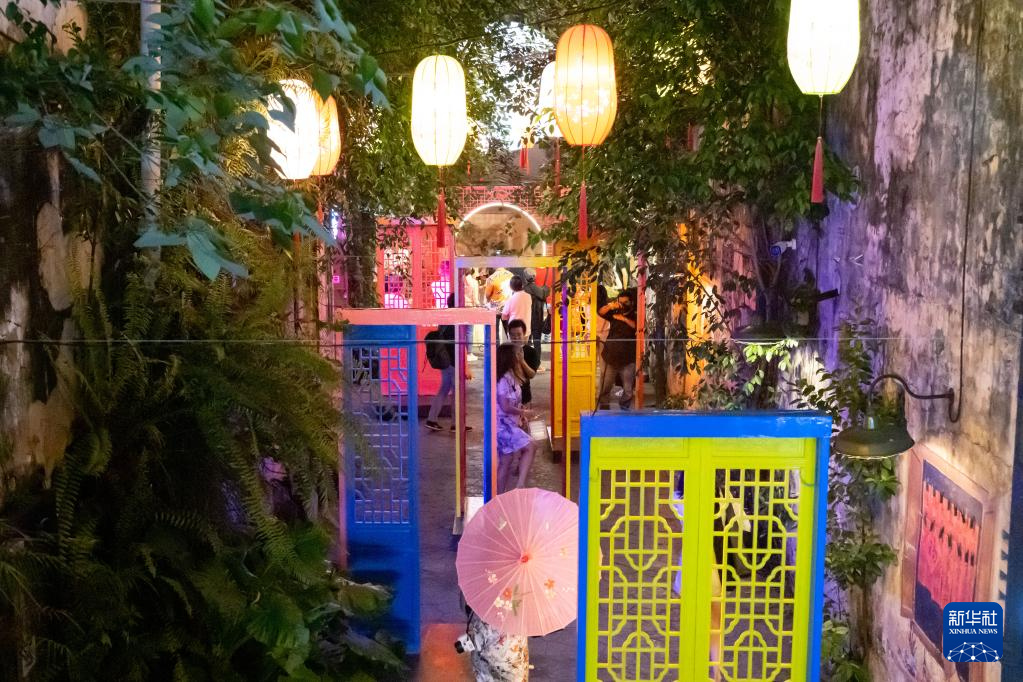 8月25日,人们在马来西亚吉隆坡鬼仔巷观赏“超月门窗”艺术装置。