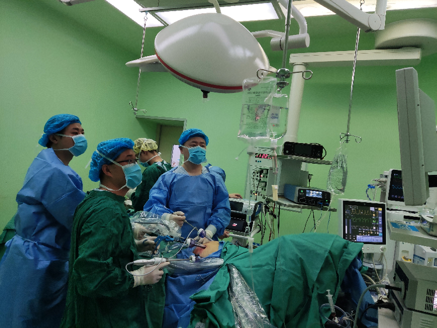 治疗团队经过多次反复讨论,决定为患者安排手术探查。但患者合并缩窄性心包炎、胸腹腔大量积液,手术风险极大,治疗团队联合多学科专门为患者制定了腹腔镜探查术+备胆囊癌根治术治疗方案。