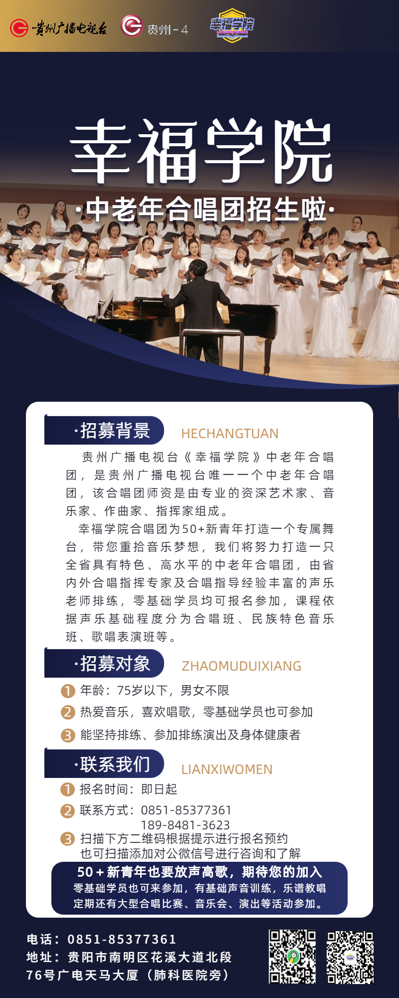 贵州广播电视台幸福学院中老年合唱团开始招生啦!