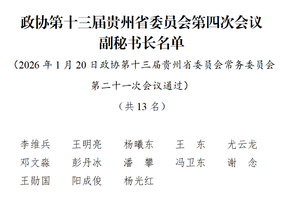 贵州省政协十三届四次会议秘书长、副秘书长名单公布