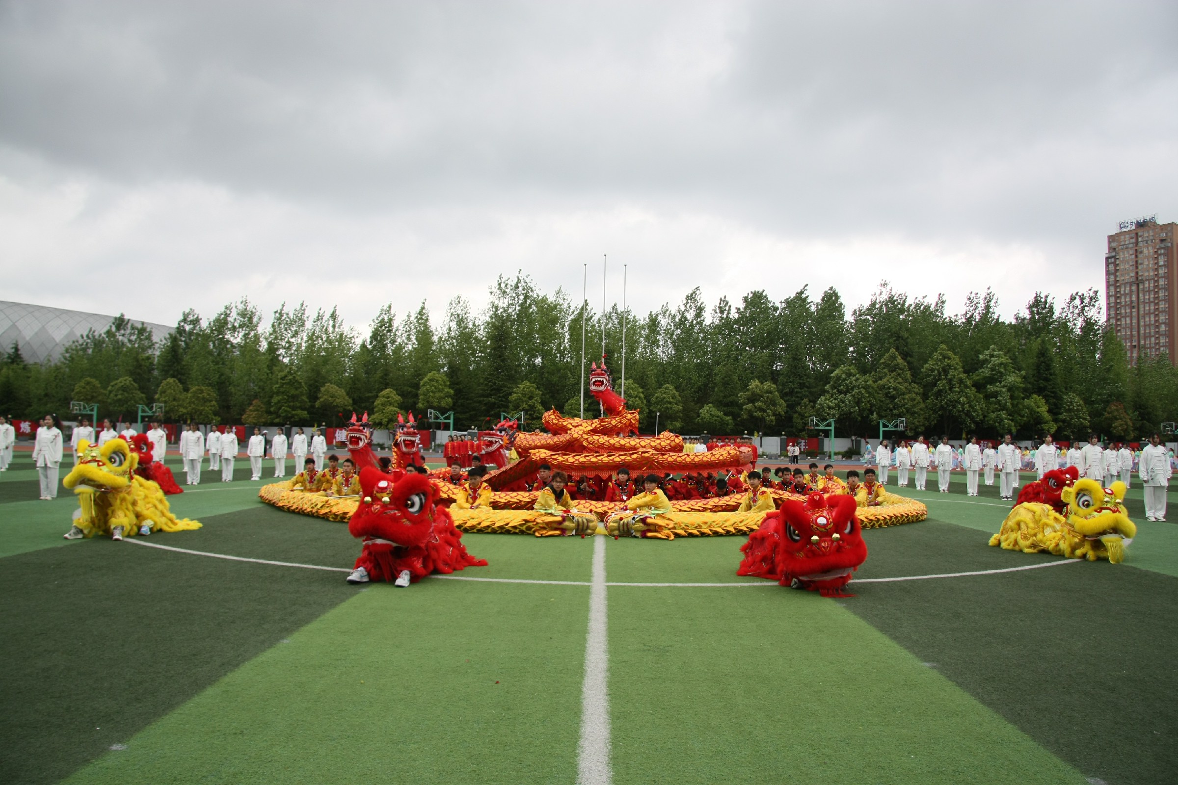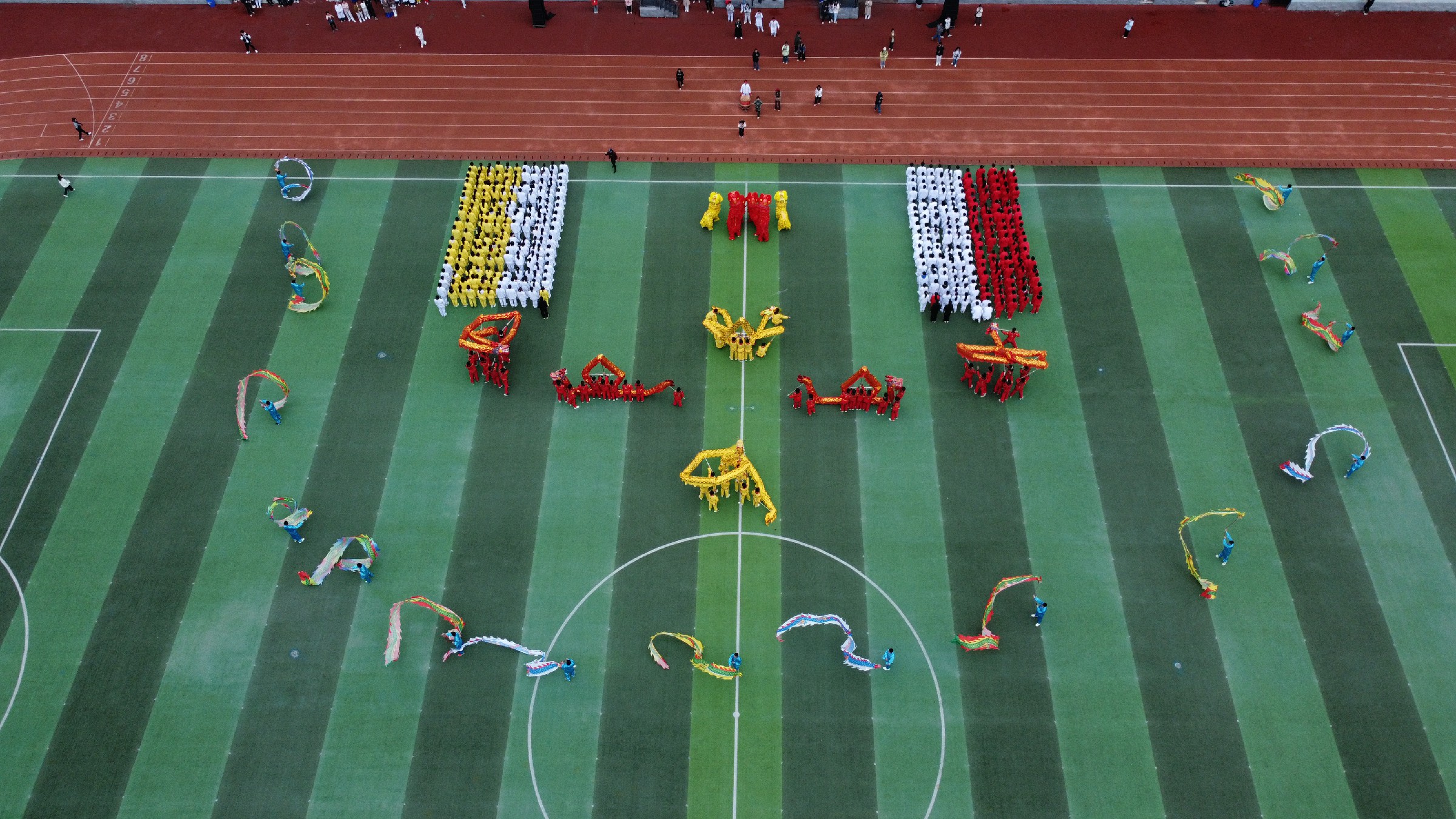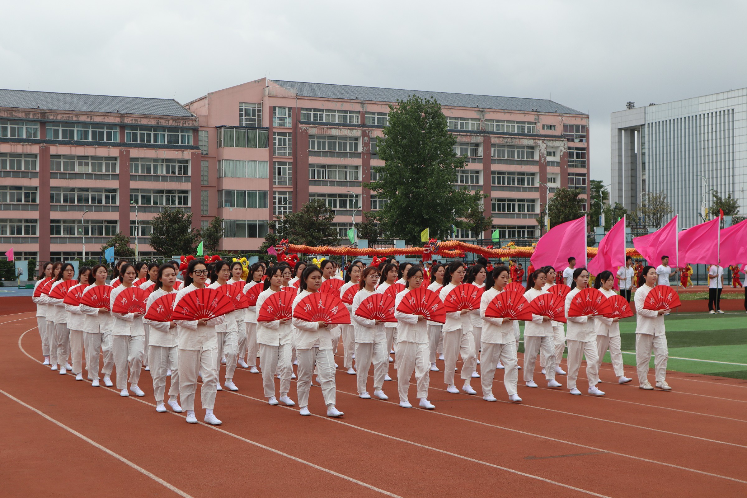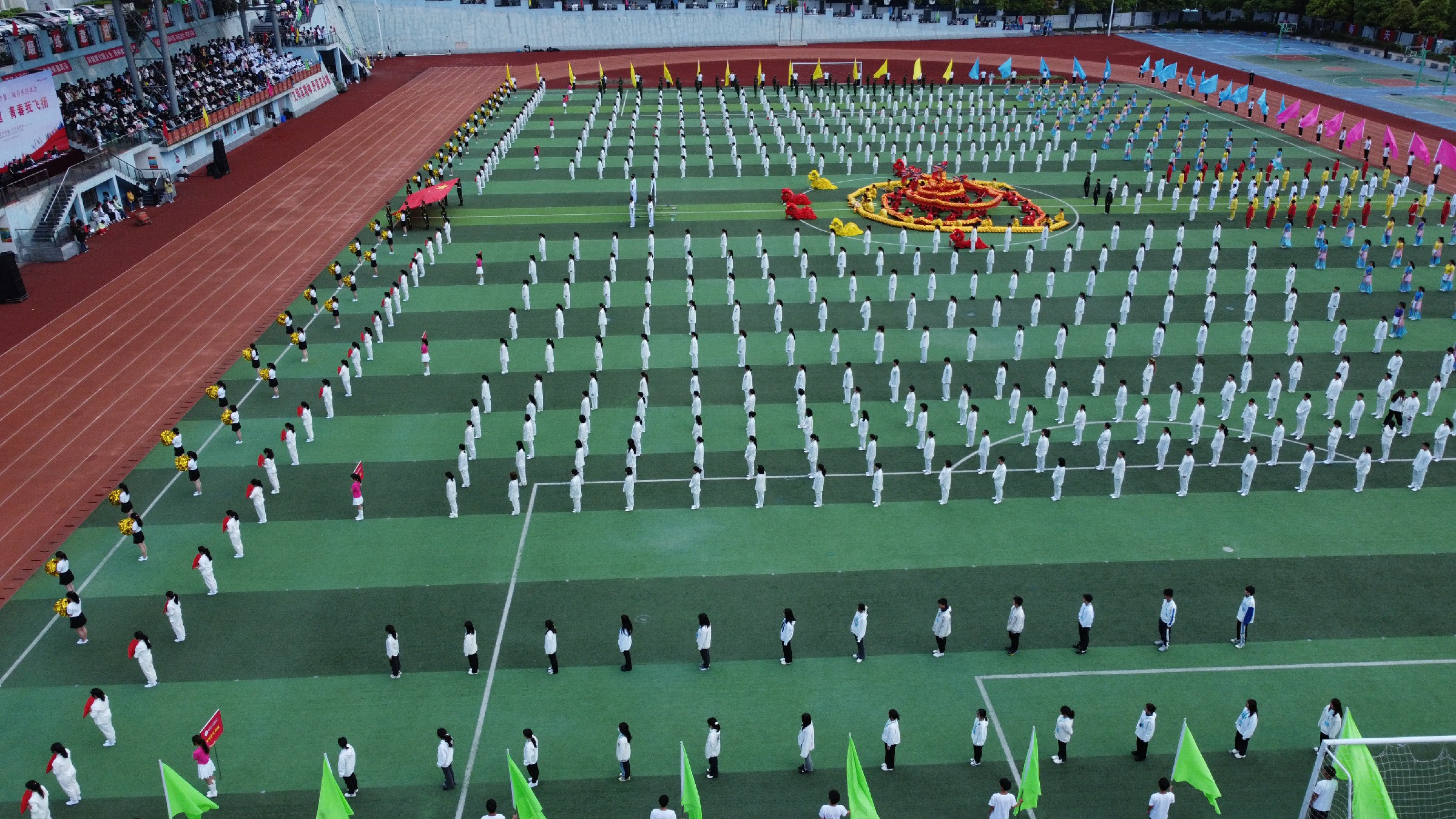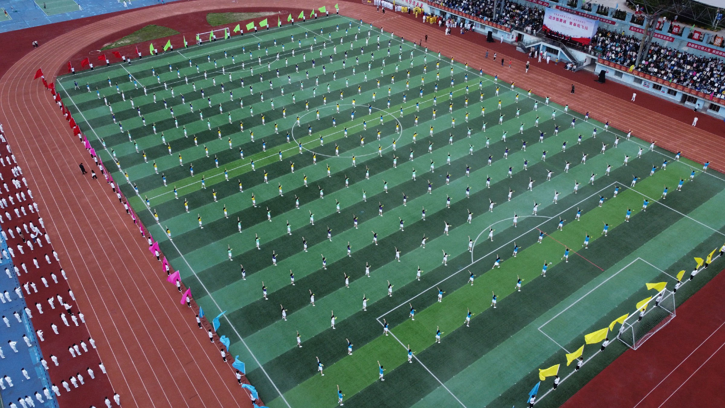 田径场上,悠扬动人的音乐回荡,健美操、舞龙舞狮、太极扇等方队上场展示,现场热闹非凡,节目精彩绝伦。