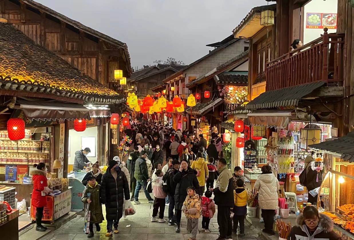 癸卯兔年的春节期间,贵阳市5A级景区青岩古镇推出了“新青岩·中国年‘大明志·彩’童梦奇缘”新春园游会,从正月初一至正月十五,每天17:00-22:00精彩演绎互动,喜迎四方宾客一起欢度新春佳节。流光溢彩的花灯、热闹非凡的古韵演绎、特色美味的小吃,美丽的汉服小姐姐……都是游客在景区的绝佳体验。