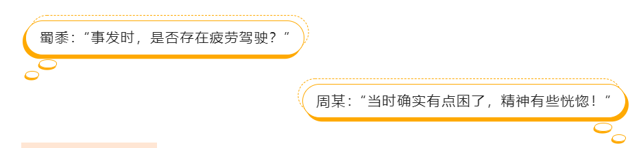 凭借民警多年的事故处理经验,初步判定驾驶员周某驾驶机动车在路面平坦的新高速公路上疲劳驾驶,最终导致交通事故的发生!