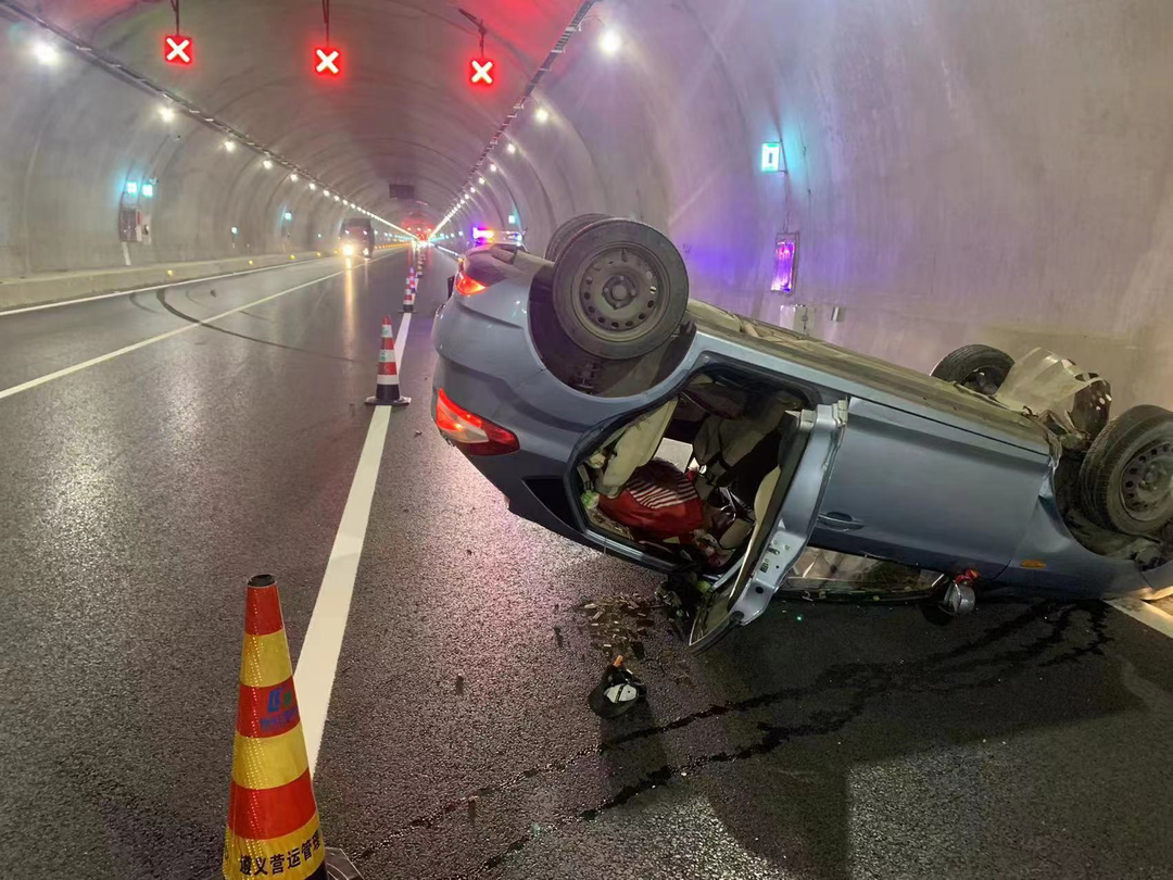 贵州交通广播记者从贵州省公安厅交通管理局获悉。12月26日上午07点10分许,在仁遵高速大屋基隧道内发生了惊险的一幕,一辆小型轿车在行车途中接连撞击隧道水沟边沿后又径直撞向左边隧道壁,翻了个底朝天。