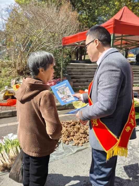 3月4日,平安小分队走进刘仓桥集市,利用赶场日人流量大、老年群体集中的特点,开展“守护银发钱袋子·护好安心菜篮子”主题宣传活动。活动现场,宣传人员通过发放宣传折页、现场讲解、互动问答等形式,向老年群众普及防范非法集资、识别金融诈骗、保护个人信息等知识,重点提醒老年人警惕“高收益理财”“养老项目投资”“不明链接不点击”等常见骗局。