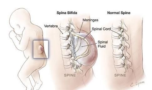 图为腰骶部出现异常肿块的脊髓拴系患儿