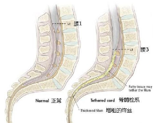 脊髓拴系分型很多,可将其笼统分为两大类:一是并发症相对较多的复杂(脂肪瘤)型脊髓拴系,二是预后相对较好终丝紧张型脊髓拴系。琳琳属于第二类。