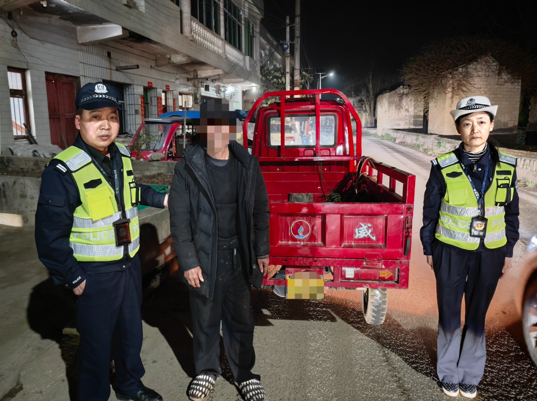 近日,安顺市公安局平坝分局交管大队民警在平坝区十字乡设卡检查过往车辆,20时47分许,对一辆红色三轮车驾驶人进行呼气式酒精检测时,检测仪闪烁红灯,该驾驶人有酒驾嫌疑。