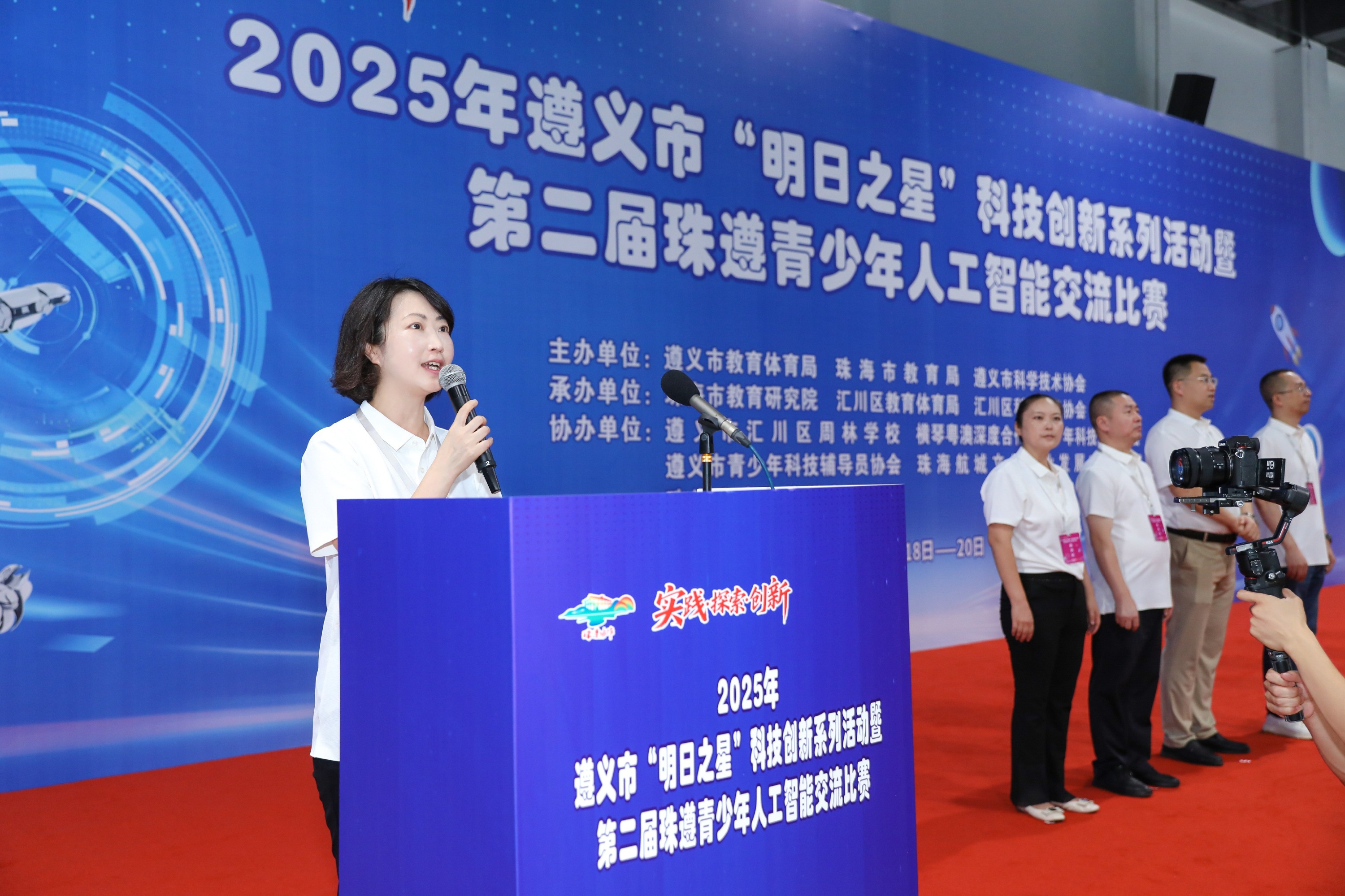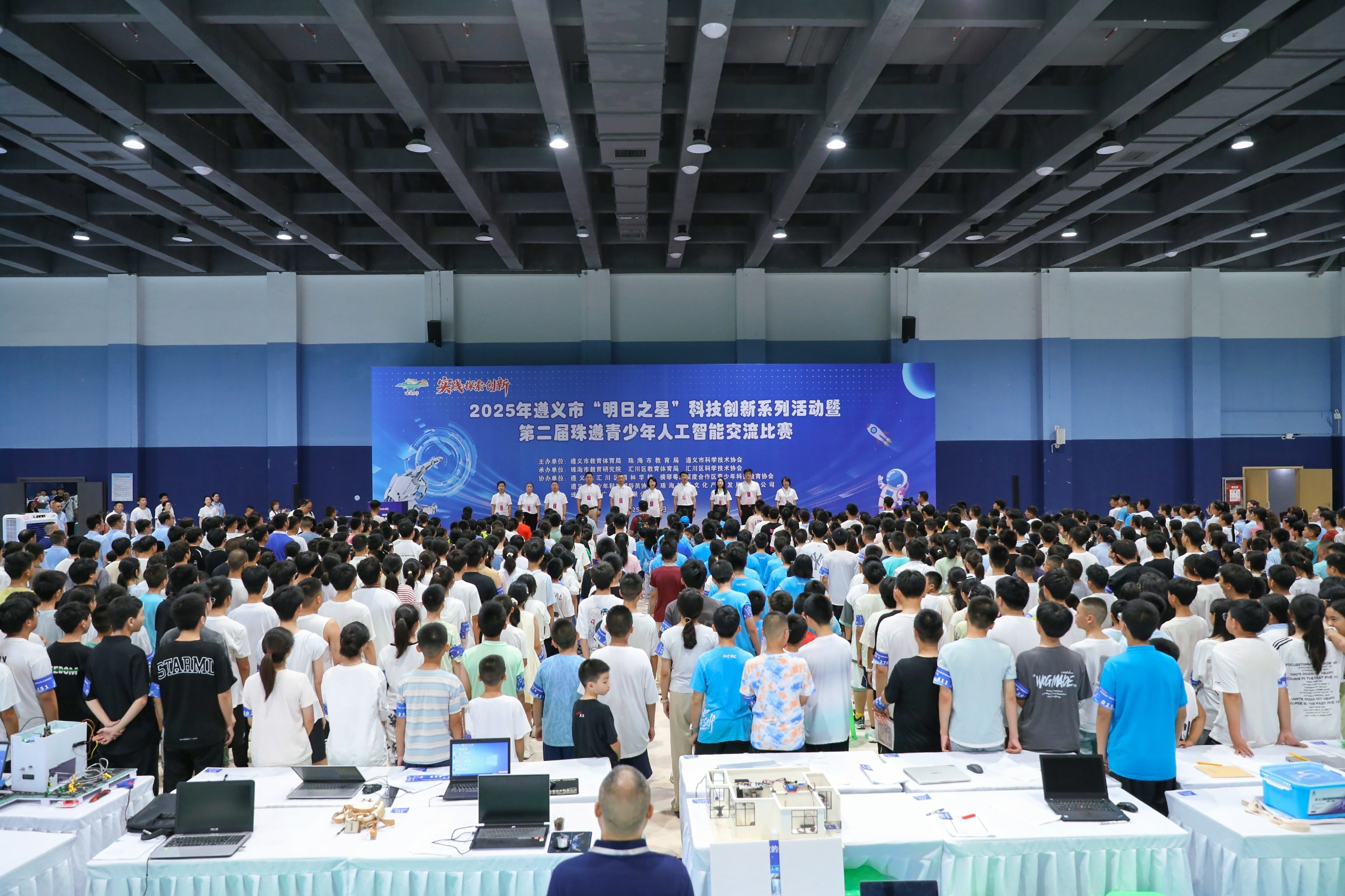 盛夏黔北,万物竞秀。7月19日上午,2025年遵义市“明日之星”科技创新系列活动暨第二届珠遵青少年人工智能交流比赛在汇川区周林学校篮球馆隆重开幕。来自珠遵两地共650余支参赛队伍(粤港澳70支队伍)、1850余名师生齐聚红色遵义,以“实践·探索·创新”为号角,开启了一场融合前沿科技与山海深情的青春盛会。