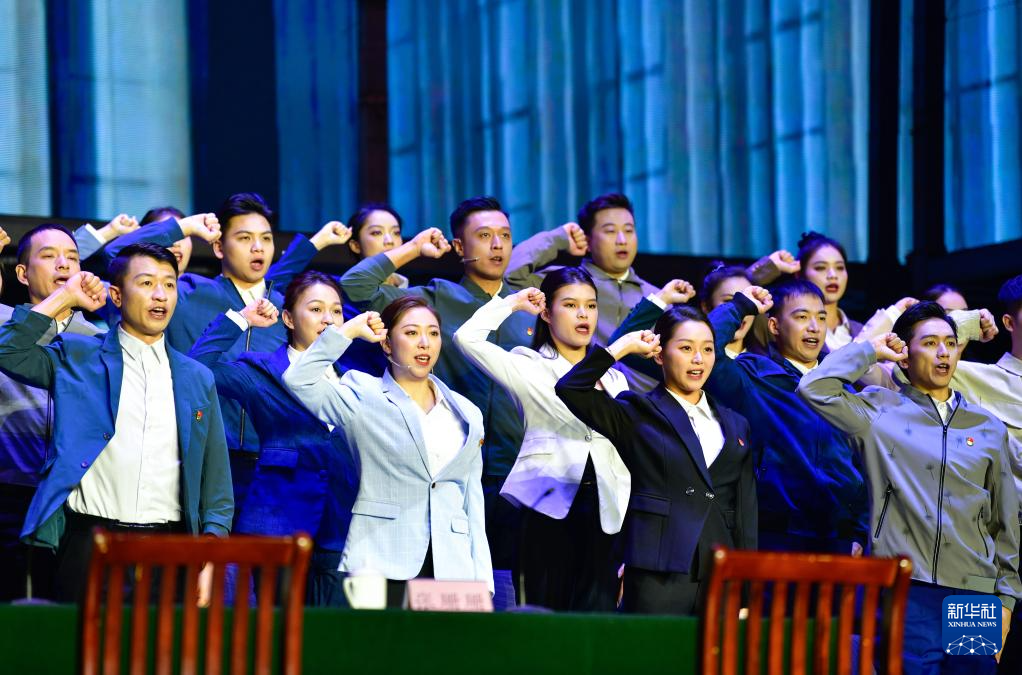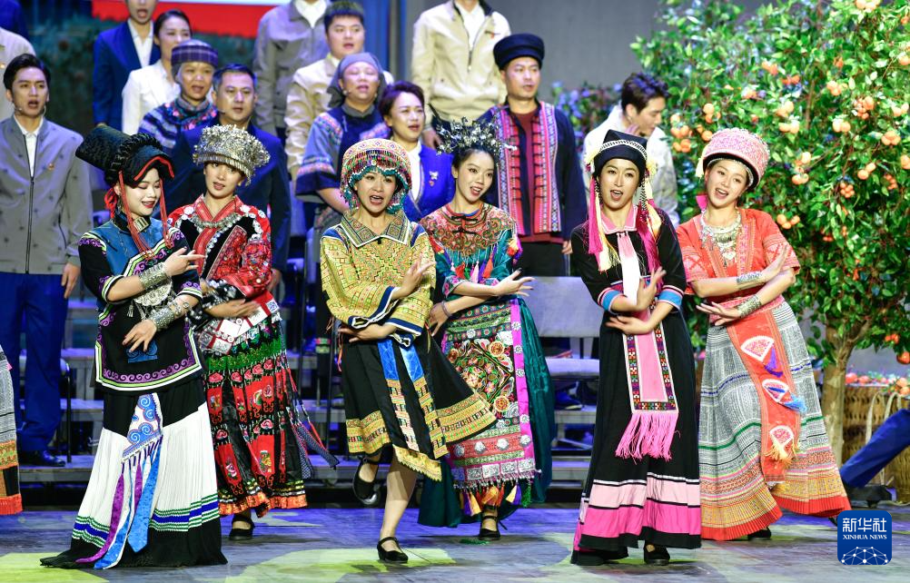 11月30日,演员在贵阳大剧院表演民族歌剧《扶贫路上》。