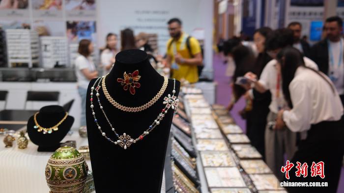 4月23日,第139届广交会展台上陈列着多款珠宝首饰,吸引采购商交流。中新社记者 蔡敏婕 摄