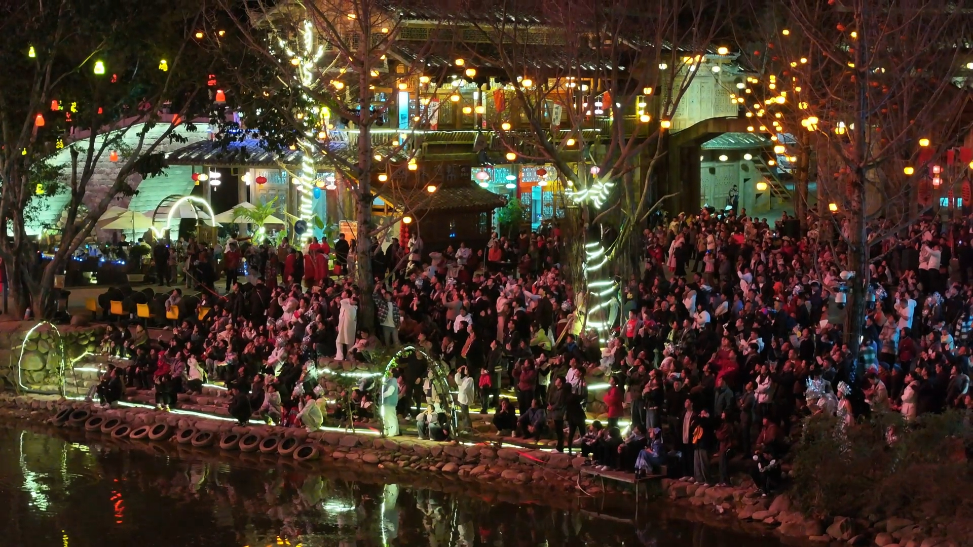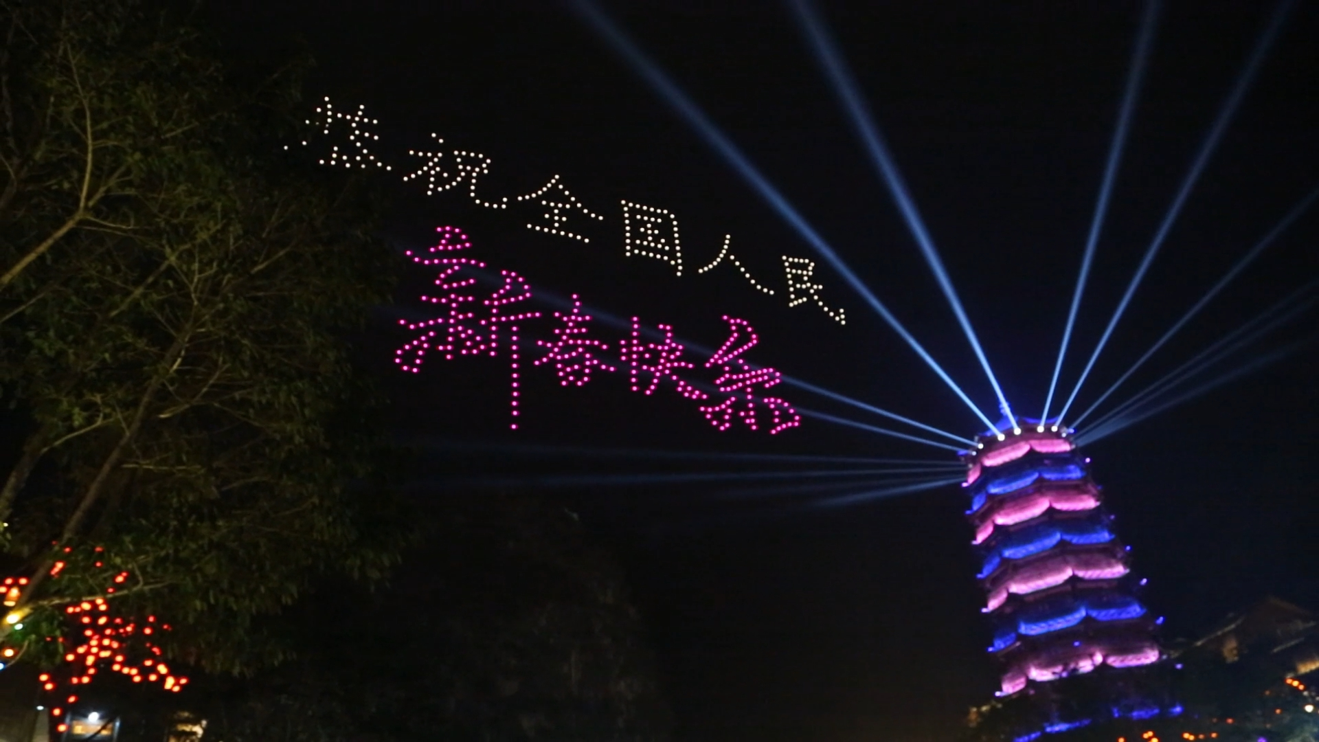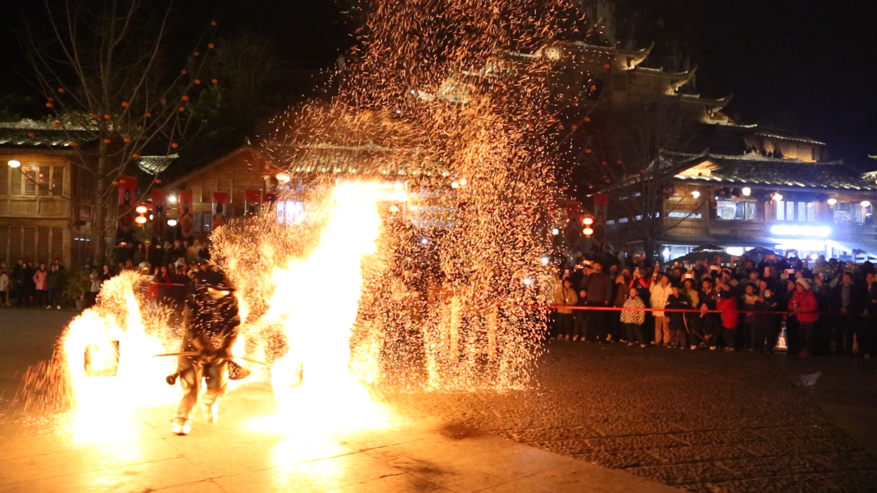 夜晚,绚烂的烟花、铁花在夜空中绽放,火壶如火龙飞舞,500架大型无人机盘旋天空摆出精美造型,传统文化融入现代科技更显惊艳。篝火燃起,全国各地的游客与布依族同胞手拉手,围着篝火跳布依转场舞,共享新春的快乐。