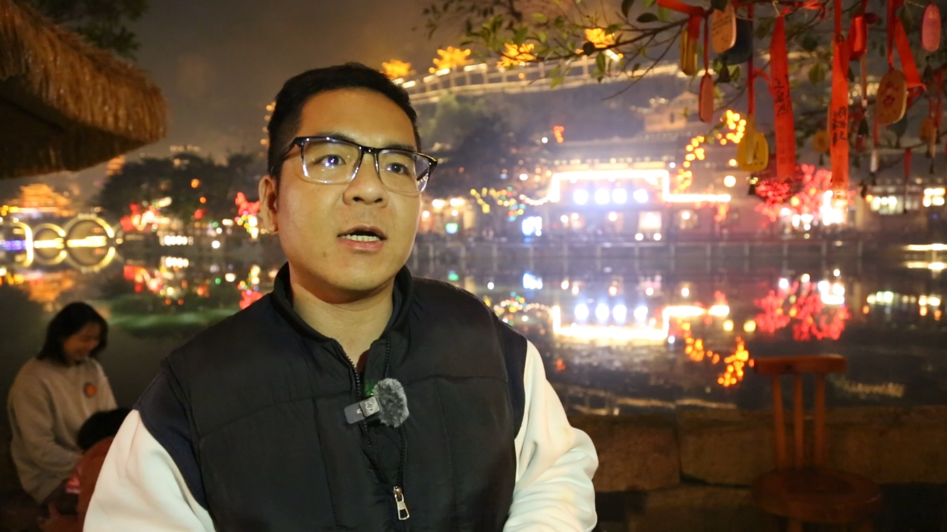 广西游客黄顺告诉记者,放完烟花之后,整个湖面上弥漫着烟雾,把整个布依小镇氛围烘托得很有年味,下个春节全家人还会过来玩。