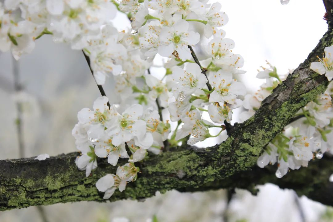 一簇簇花朵如白雪堆枝,