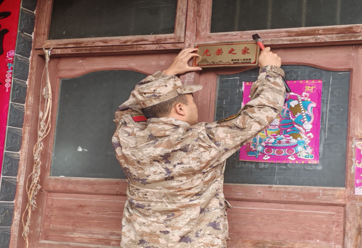 花溪区麦坪镇武装部为入伍新兵家庭悬挂光荣牌