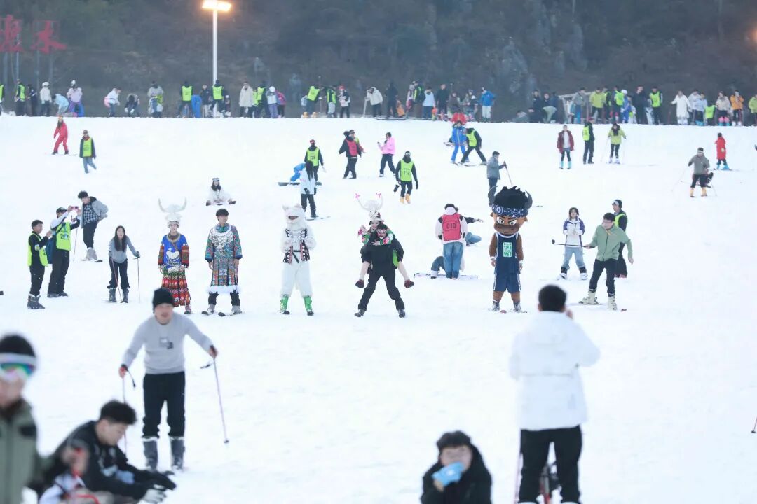 梅花山景区营销新媒体部负责人唐倩表示,本次活动是滑雪场首次与黔东南地区联动,借助“村超”“村BA”“村T”等IP影响力,打造“冰雪+非遗”特色体验,吸引全国各地的游客。她说:“我们希望游客在滑雪赏雪的同时,也能深度感受贵州旅游与民族文化的双重魅力。”
