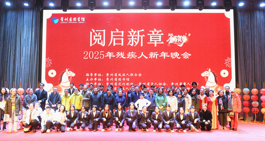 12月20日,以“残健同心贺新春 温情相伴向未来”为主题的2025年“阅启新章”残疾人新年晚会在贵州省图书馆北馆举行。贵州省残联党组书记、理事长周代军,省残联党组成员、副理事长李泽方亲临现场,参与群众性文化活动,与残疾人共同庆祝即将到来的元旦节。
