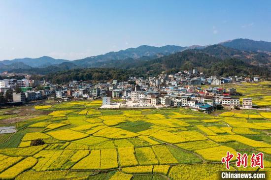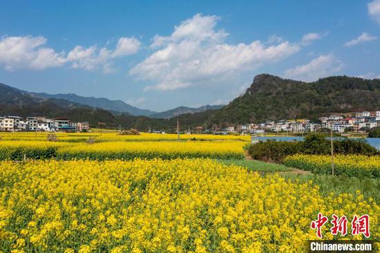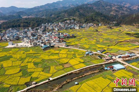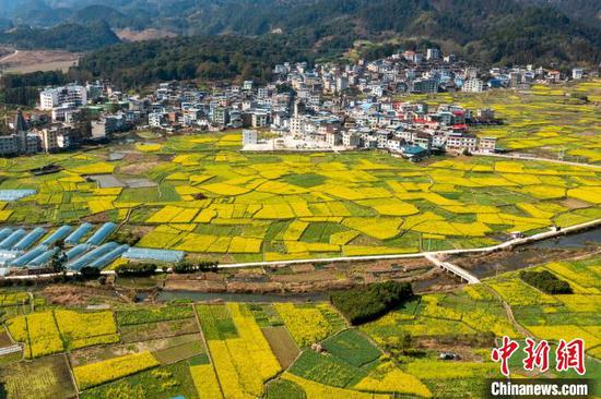 雨水时节,贵州省黔东南苗族侗族自治州从江县各地油菜花迎来盛花期。满地金黄的油菜花与当地的田野、山峦、道路、河流及村庄相互映衬,构成一幅美丽的乡村春日画卷。
