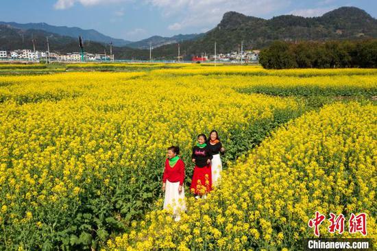 民众在贵州省从江县贯洞镇油菜花田游玩。吴德军 摄