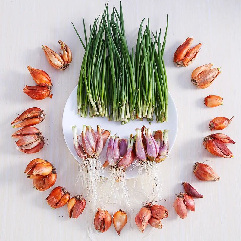 红葱头则是“超生游击队”,一株红葱头苗能长出78910个兄弟姐妹,个个小巧玲珑。