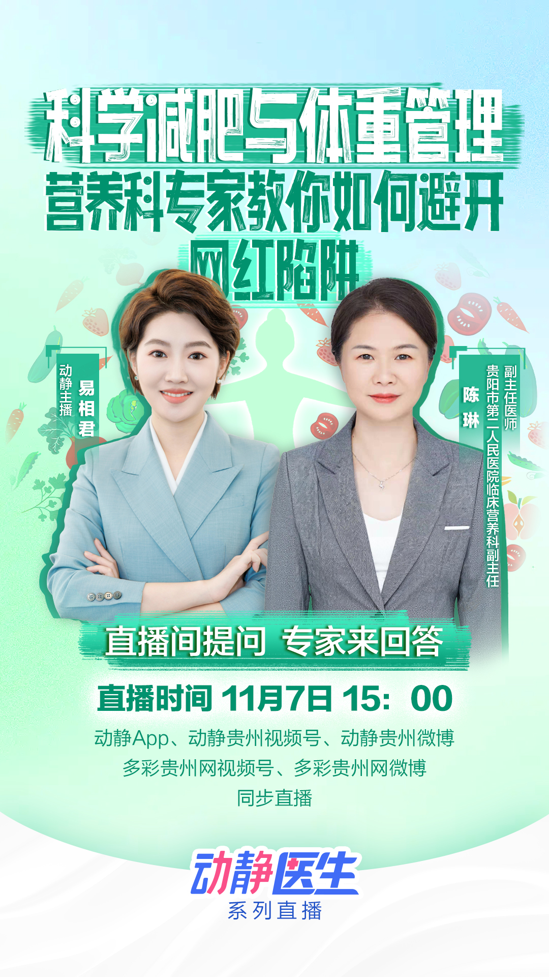 冬季寒风凛冽,火锅暖身、被窝诱惑让减肥计划频频受阻?网红减肥法层出不穷,盲目跟风反而危害健康?11月7日下午3点,贵阳市第二人民医院临床营养科副主任陈琳将做客直播间,以科学视角破解冬季减肥难题,助你避开陷阱,健康瘦身!