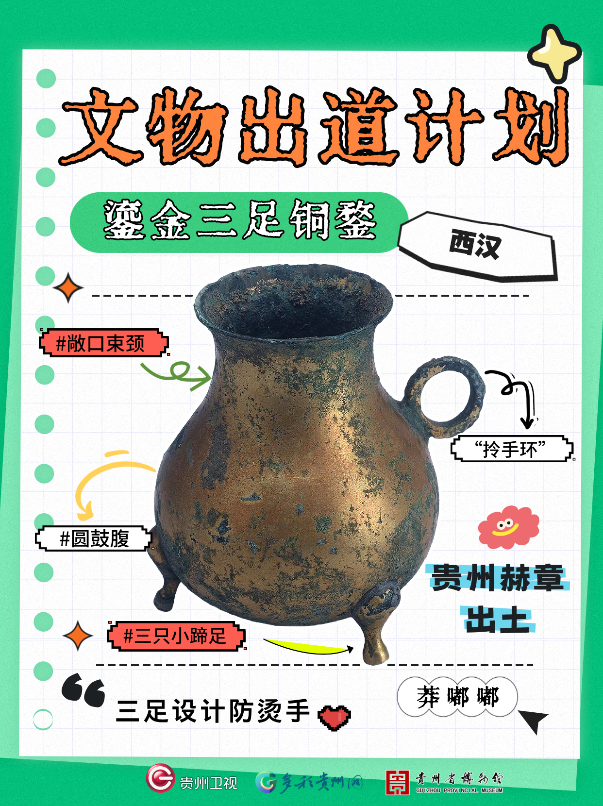 编者按: 文物很i(内向),文创帮它“开麦”! 《文物出道计划》以贵州省博物馆上新的文创为引,通过文创复刻的文物细节,从“年轻化、趣味化、可消费化”的角度带你了解贵州文物的故事,助力贵州文博IP“出圈”!