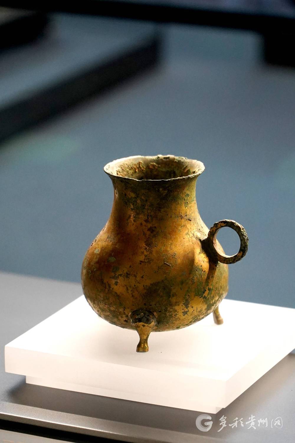 当巴蜀流行的器物流传到贵州,引起了西南夷族群的注意。先民不仅仿制,还玩起了创意升级——鎏上了一层耀眼的金,让器物格调提升;再加上三只小巧的蹄足,既增加器物的稳定性,又让整体造型更具独特的美感。