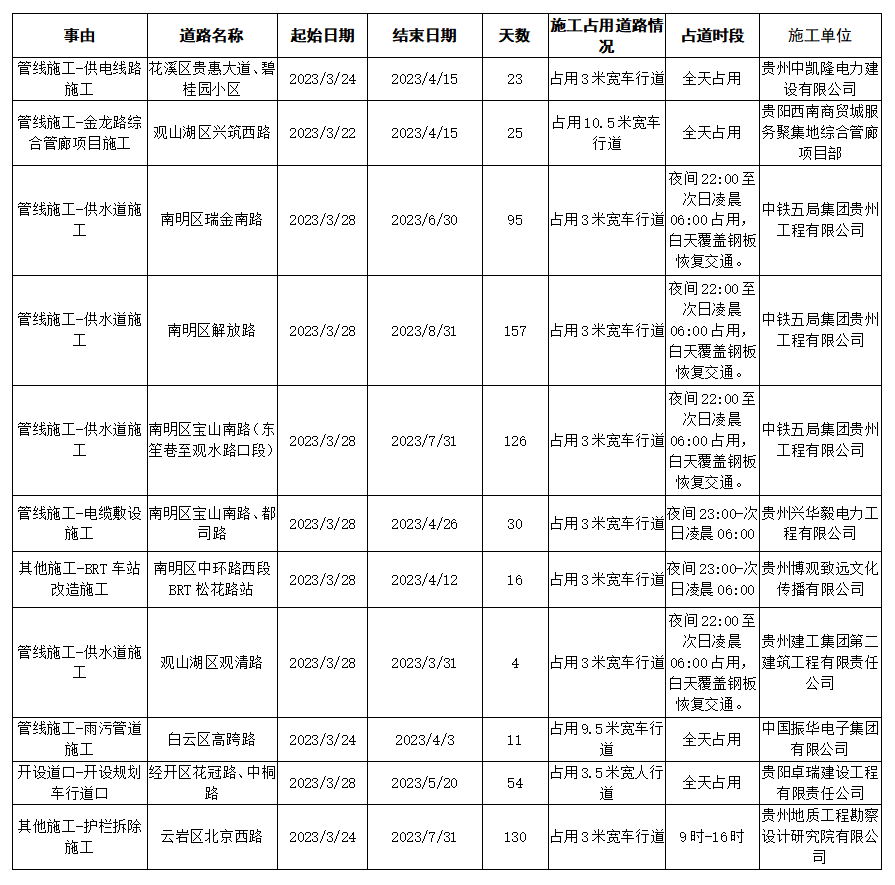 注意!贵阳这些路段将占道施工
