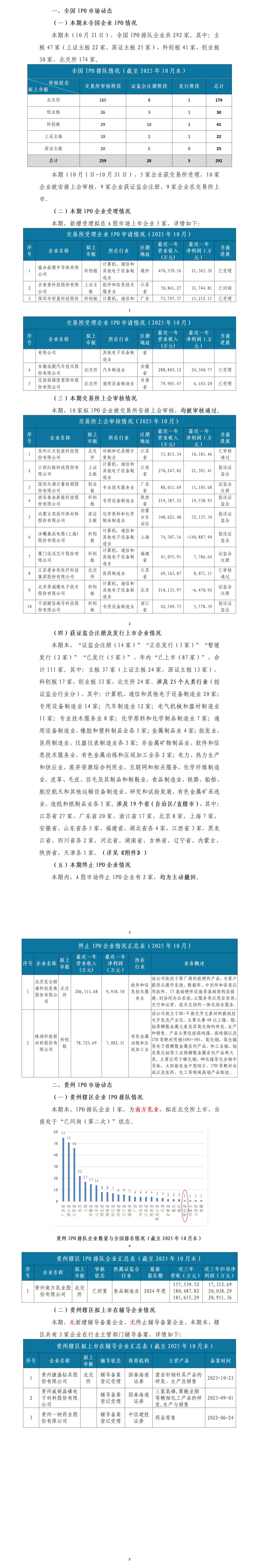 黔证资讯丨贵州资本市场月报:IPO市场动态(2025年10月)